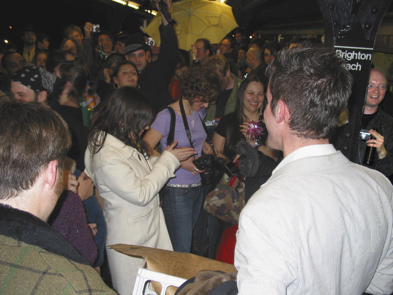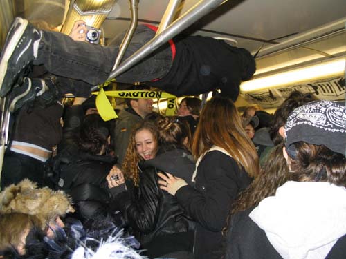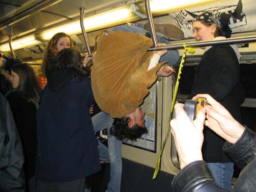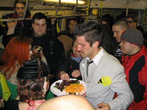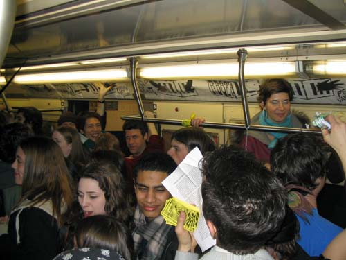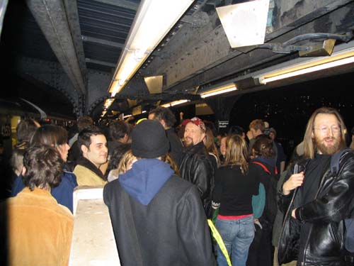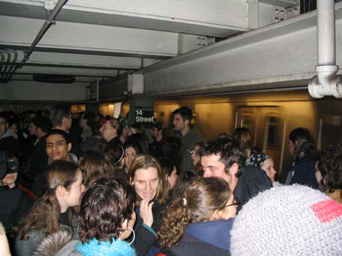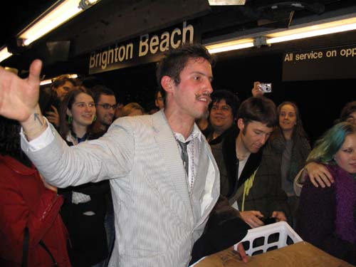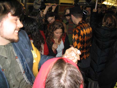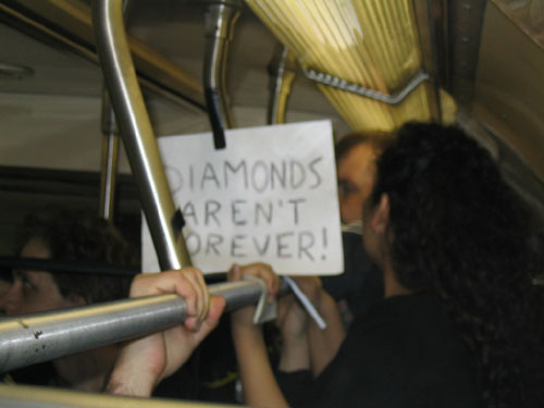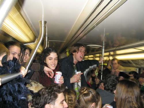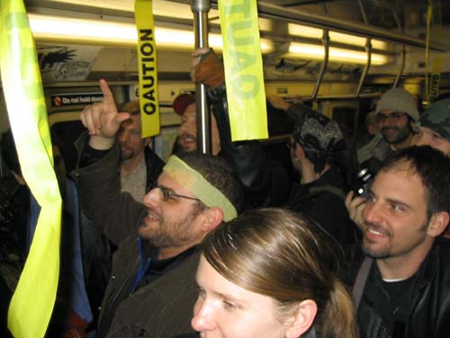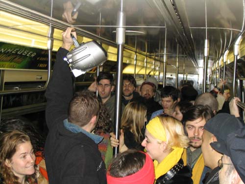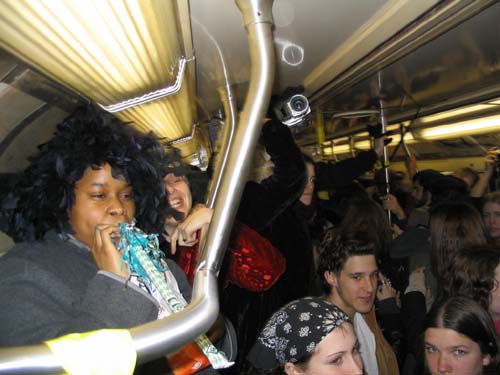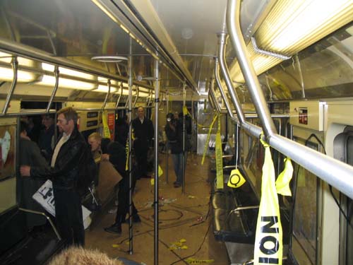 "On Friday February 20th, 2004 the MTA is retiring the Q Diamond train after more than 20 solid years of service, to make way for 'progress' and 'faster trains' over the newly restored express tracks on the Manhattan Bridge. Well, we aren't letting the Q Diamond disappear without a party honoring its awesome service. Live music provided by members of the Hungry Marching Band, TrainArt created by the Toyshop Collective, recorded music through multiple boomboxes. Eulogies and haiku, performances and skits, byob hysteria and we'll provide the noisemakers. New Orleans funeral attire (danceable & fashionable black) requested. Bring your favorite recollection about the Q Diamond or any subway story and share the wealth. The train will ride from Union Square to Brighton Beach (end of the line.) Following the funeral, the party will continue back Manhattan bound (via the Q circle) and arrive at Action / Direction Creation HQ in serene Ditmas Park West, Flatbush for a dance party extravaganza. Friday Feb 20th, 9:28pm sharp. Free. Meet at the very end of the Brooklyn bound Q,N,R,W platform in Union Square. Wait for the party train to arrive – the last two cars of the 9:24pm Q Diamond from 57th st. Call 718. 930. 4768 for more info or actiondirection@hotmail.com" ------- Matt Levy